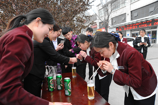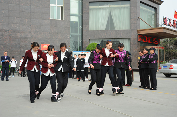3月17日上午,迪尼斯伊川店酒店在前院廣場上舉行了一場別開生面的春季運動會。