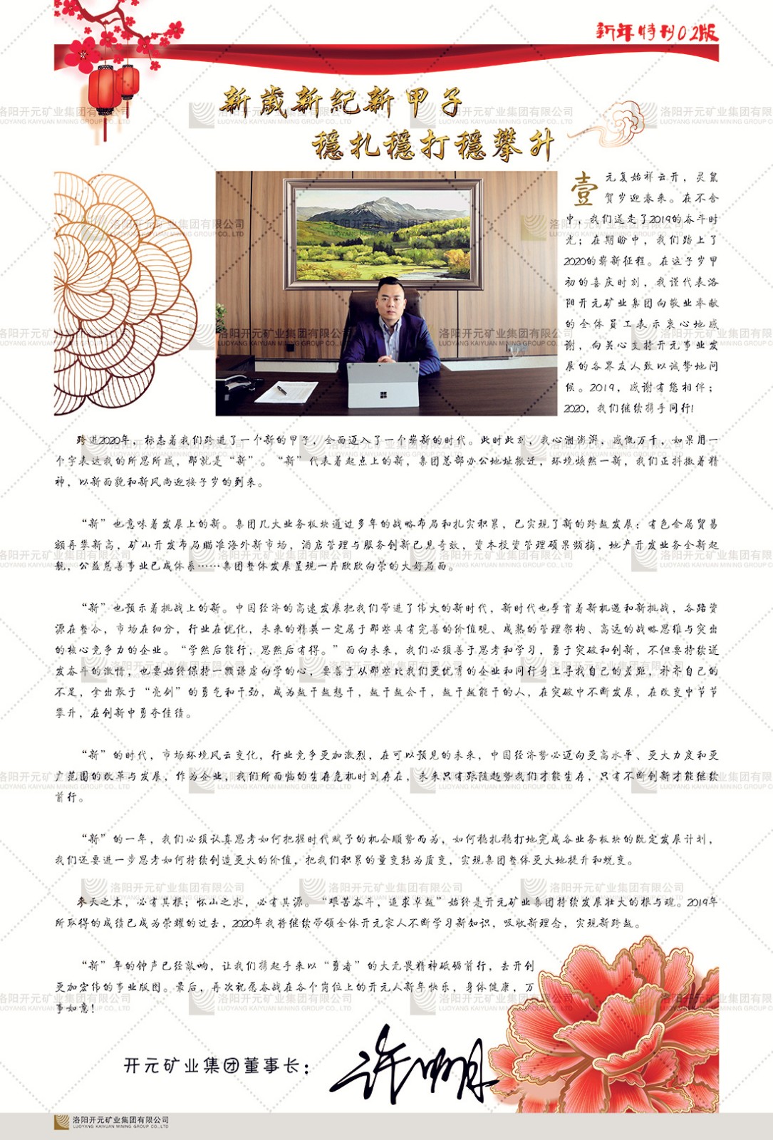 洛陽(yáng)開(kāi)元礦業(yè)集團(tuán)有限公司簡(jiǎn)介洛陽(yáng)開(kāi)元礦業(yè)集團(tuán)有限公司,始成立于2006年,位于洛陽(yáng)市開(kāi)元大道269號(hào)。集團(tuán)旗下共有五余家全資子公司,業(yè)務(wù)涉及有色金屬礦山開(kāi)發(fā)、礦產(chǎn)品購(gòu)銷與進(jìn)出口貿(mào)易、房地產(chǎn)開(kāi)發(fā)、文化藝術(shù)、企業(yè)管理與咨詢、資本投資等多個(gè)領(lǐng)域。民建河南省委委員、民建河南省委企業(yè)委副主任、民建洛陽(yáng)市委委員、企業(yè)委主任、洛陽(yáng)民建企業(yè)家協(xié)會(huì)會(huì)長(zhǎng)許明月是公司創(chuàng)始人,現(xiàn)任洛陽(yáng)開(kāi)元礦業(yè)集團(tuán)有限公司董事長(zhǎng)。在礦業(yè)領(lǐng)域,洛陽(yáng)開(kāi)元礦業(yè)集團(tuán)擁有多家實(shí)力雄厚的子公司:貴州開(kāi)元礦業(yè)有限公司探、采礦權(quán)面積共11.33平方公里;興??h銅鑫礦業(yè)有限公司探礦權(quán)面積8.76平方公里,礦山資源潛力巨大;2021年,開(kāi)元集團(tuán)與盧氏中科礦業(yè)有限公司開(kāi)展戰(zhàn)略合作。盧氏中科礦業(yè)有限公司專注于有色金屬的浮選、加工和銷售,擁有強(qiáng)大的技術(shù)支撐平臺(tái),是集探、采、選、冶、研為一體的中大型綜合礦業(yè)企業(yè)。目前,盧氏中科王家河1000噸選礦廠已成功投產(chǎn),雙河金礦、柳關(guān)欒盧鉛鋅礦相繼順利開(kāi)工,樓房銀礦與圪老灣鉛鋅礦的深部探礦重大突破,標(biāo)志著礦山版圖取得重大進(jìn)展,為開(kāi)元集團(tuán)后續(xù)發(fā)展奠定了堅(jiān)實(shí)基礎(chǔ)。在文化傳媒領(lǐng)域,洛陽(yáng)市明月美術(shù)館通過(guò)豐富多樣的藝術(shù)展覽、學(xué)術(shù)研討和公共教育活動(dòng),努力打造一個(gè)集展覽、交流、教育、研究為一體的綜合性藝術(shù)平臺(tái)。此外,在金融投資領(lǐng)域,開(kāi)元集團(tuán)旗下的北京明峰資本管理有限公司專注于投資具有高增長(zhǎng)潛力的優(yōu)秀企業(yè),特別是高科技、新能源、環(huán)保等新興產(chǎn)業(yè),為客戶提供個(gè)性化的資產(chǎn)配置服務(wù)。在做好企業(yè)經(jīng)營(yíng)的同時(shí),開(kāi)元集團(tuán)始終不忘企業(yè)的社會(huì)責(zé)任和家國(guó)情懷,以突出的愛(ài)心公益事跡,開(kāi)展了一系列公益慈善活動(dòng):“民建林”公益事業(yè)通過(guò)“思源基金”“幫幫公益”線上公益平臺(tái),與眾多愛(ài)心人士籌措資金20余萬(wàn)元;資助541名貧困大學(xué)生共計(jì)270余萬(wàn)元,推進(jìn)“數(shù)字助力——河南AI人才培養(yǎng)”;捐款10萬(wàn)元,馳援京津冀、黑龍江洪水地質(zhì)災(zāi)害……公司于2017年底被洛陽(yáng)市慈善總會(huì)評(píng)為“洛陽(yáng)慈善風(fēng)云榜——十大愛(ài)心集體”。洛陽(yáng)開(kāi)元礦業(yè)集團(tuán)有限公司秉承持續(xù)發(fā)展理念,憑借多年來(lái)良好的企業(yè)信譽(yù)與經(jīng)營(yíng)業(yè)績(jī),與全國(guó)多家企業(yè)建立了良好合作關(guān)系,受到社會(huì)各界的一致好評(píng),多次榮獲“納稅標(biāo)兵”“先進(jìn)企業(yè)”“招商引資模范企業(yè)”等榮譽(yù)稱號(hào)?;赝麃?lái)時(shí)路,開(kāi)元人勠力同心,以“闖”的精神和“創(chuàng)”的勁頭,一路披荊斬棘,踏過(guò)千山萬(wàn)水;展望新未來(lái),開(kāi)元人凝心聚力,不執(zhí)于“舊”,無(wú)畏于“新”,秉承“勇于跨越,追求卓越”的企業(yè)精神,乘著國(guó)家高質(zhì)量發(fā)展新征程的東風(fēng),跨過(guò)高山,越過(guò)大海,向著集團(tuán)多元化、國(guó)際化的目標(biāo),逐夢(mèng)遠(yuǎn)航,跨越前行!
